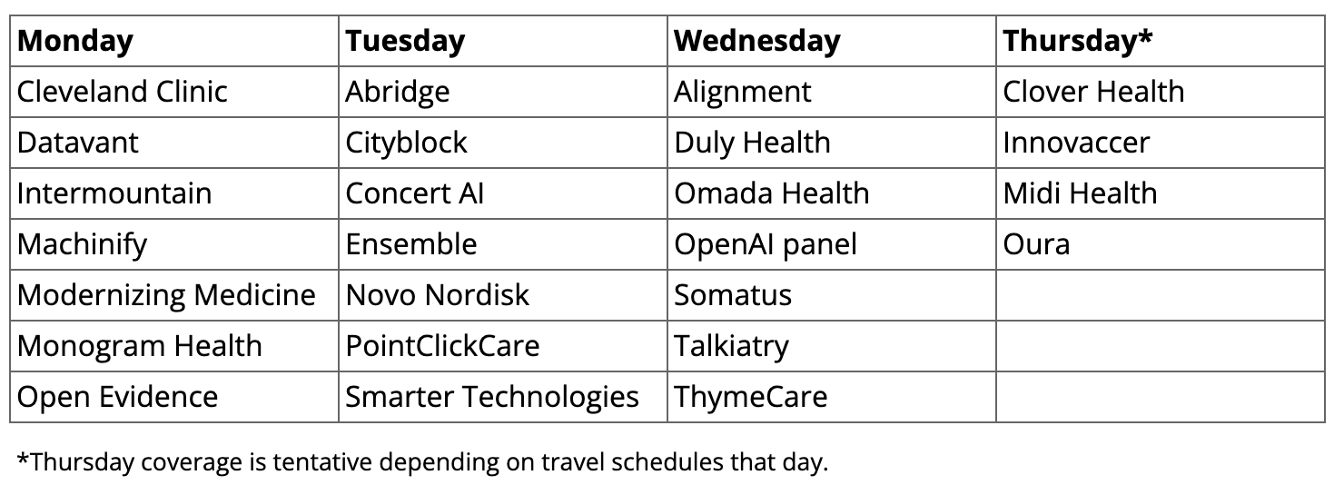 This year, instead of cramming everything into a single Sunday edition of Weekly Health Tech Reads, we’re doing something new: a short-run, pop-up newsletter for readers who want deeper and more timely coverage of key strategic insights from presentations at JPM.