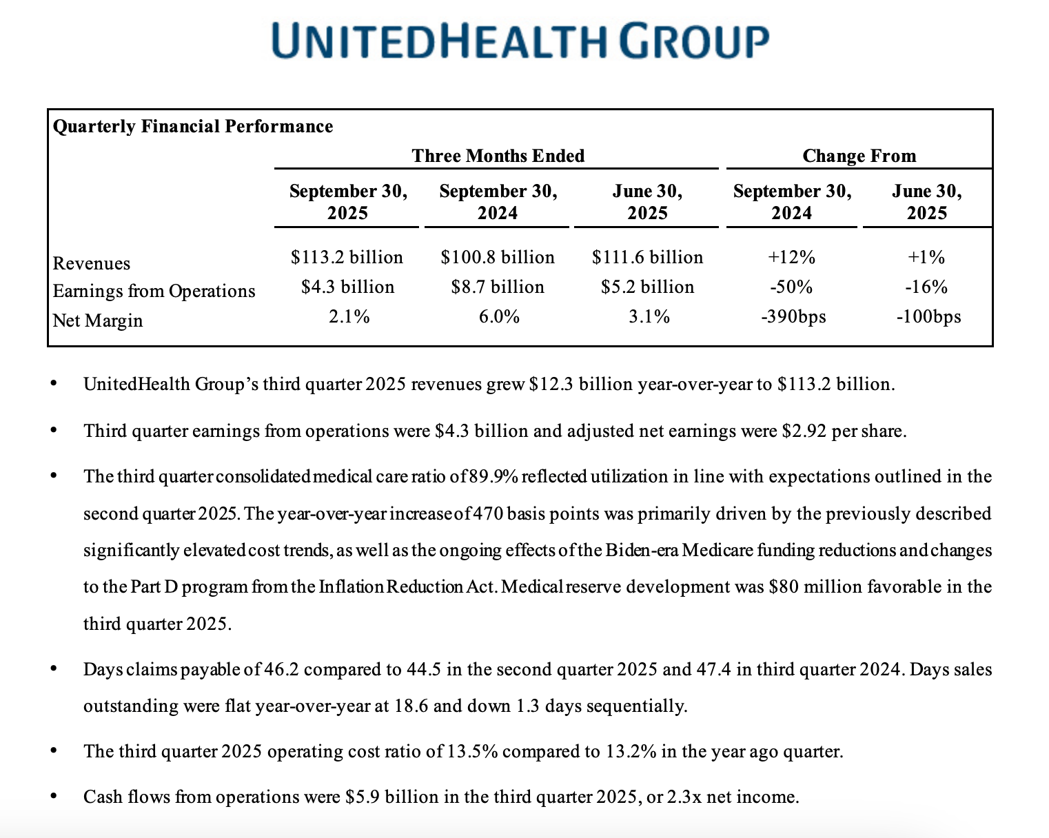 UnitedHealth released Q3 2025 earnings today. A brief summary of the earnings call is below for HTN members.