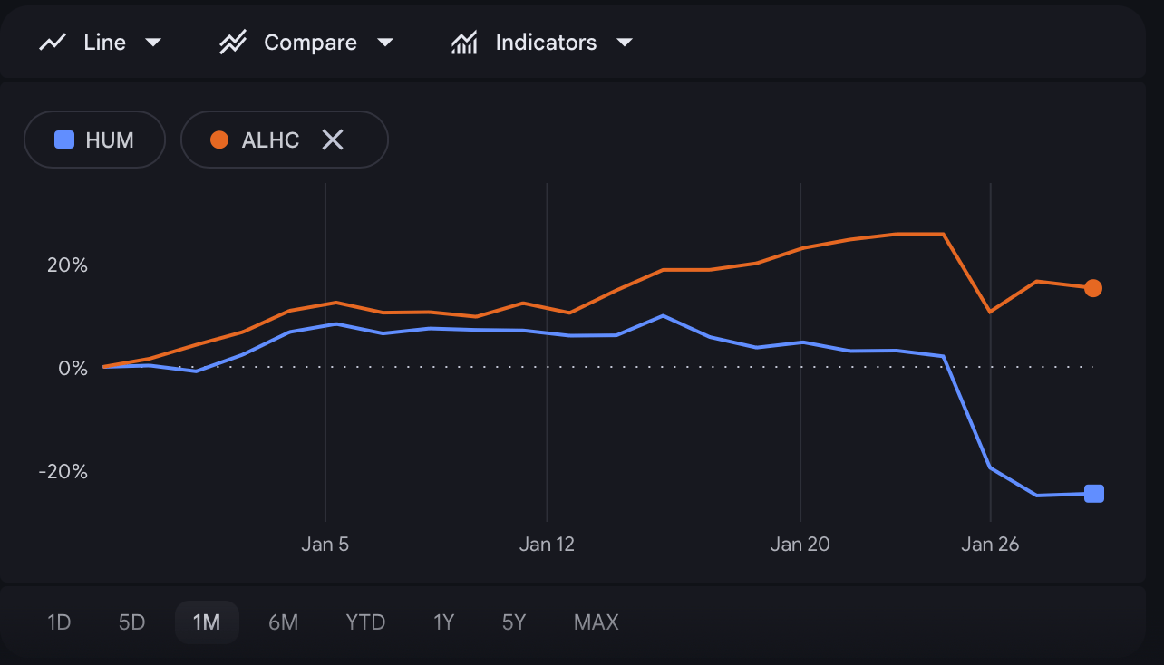Humana vs Alignment Health YTD