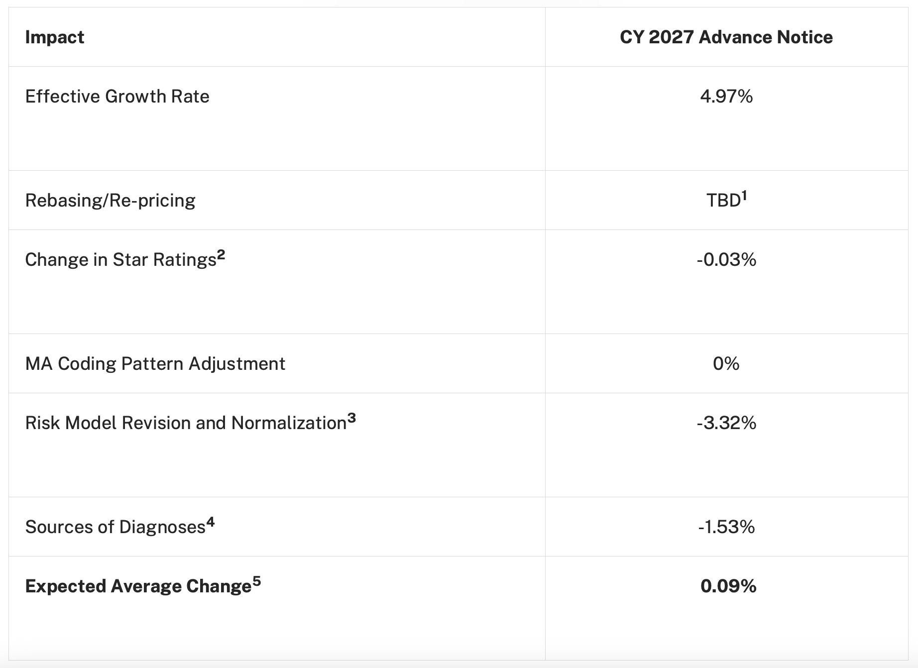 The Office of the Actuary at CMS is starting with an effective growth rate in the Original Medicare benchmark rate at 4.97% and then the subtraction starts: