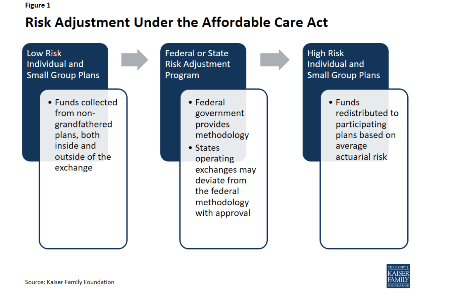 For ACA plans, the risk adjustment mechanism is pretty tidy: the plans with healthier than average members pay the plans with sicker than average members, and it all nets out to zero.