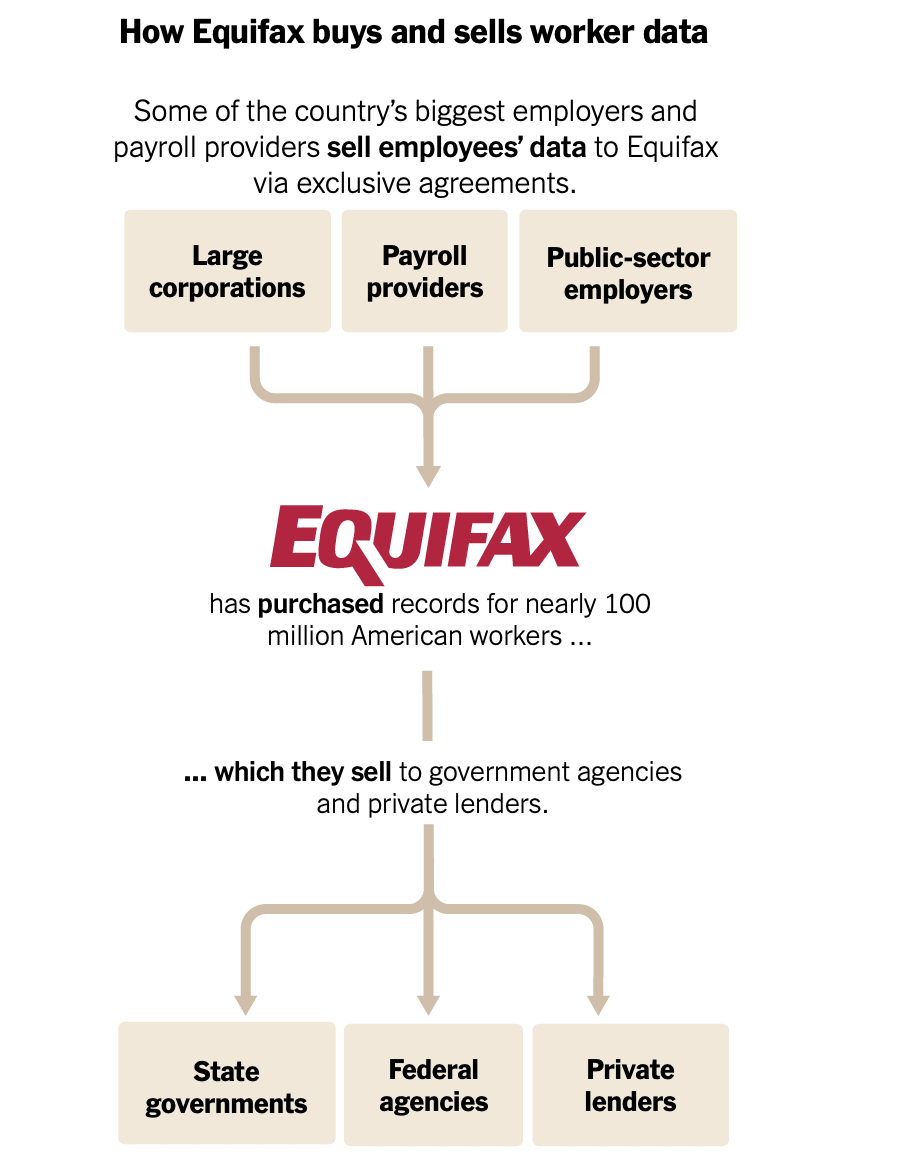 The New York Times reports on Equifax’s OB3 tailwinds at the state and federal level. In their earnings call, they shared that the business that includes this segment is doing $553.6 million in revenue with 51.2% ebitda margins on exclusive data agreements. Must be nice!