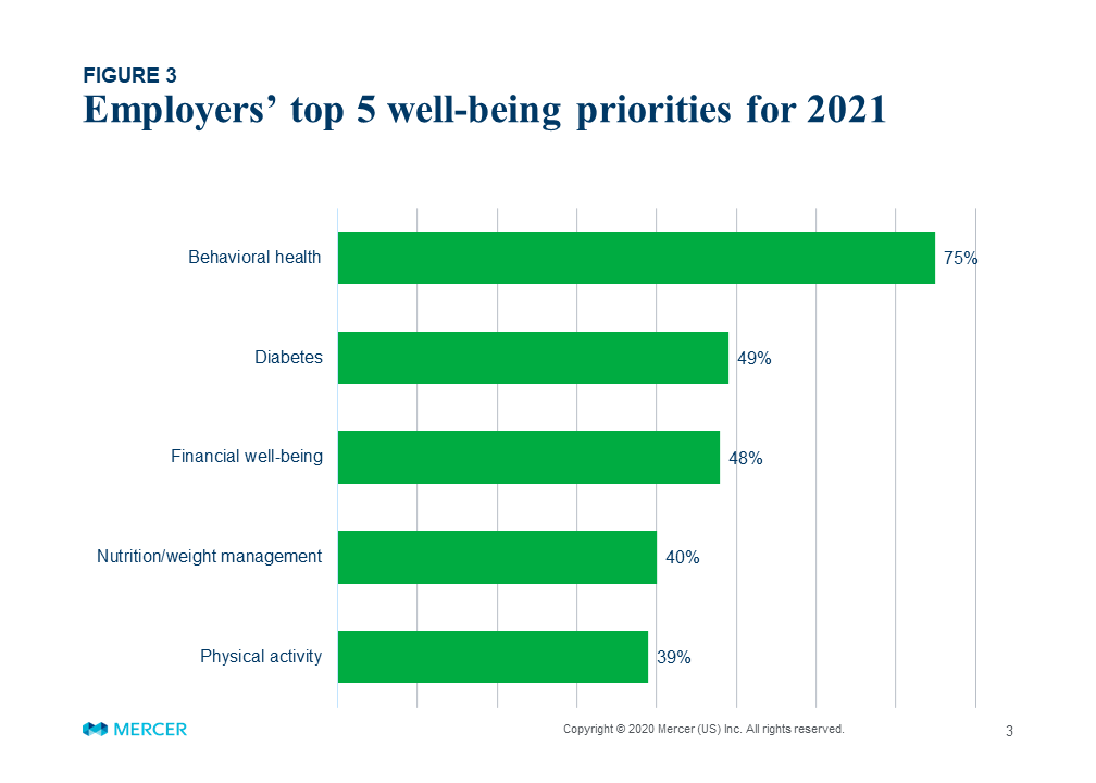 Mercer released a survey on employer priorities in 2021. Check out the chart below and how far behavioral health is in front of everything else. No wonder there’s so much investment activity there currently. It is interesting to note the Mercer claims data shows that new behavioral health diagnoses are actually down significantly year over year, which is the opposite of what you’d expect in a year like this, particularly given the explosion of mental health offerings. Link.