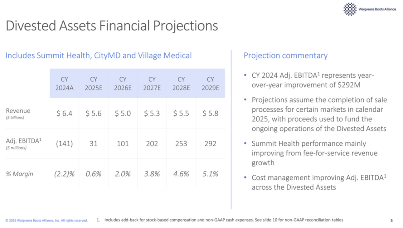 The investor presentation filed with the SEC as part of the transaction provides a good example of the benefits of being a private company while attempting to turn around the business. The presentation is six slides long, with three slides providing transaction details and three slides discussing the DAP Right that Walgreens shareholders will have from divesting VillageMD (which includes Village Medical, Summit Health, and CityMD). In other words, there was zero info provided on the core business moving forward.