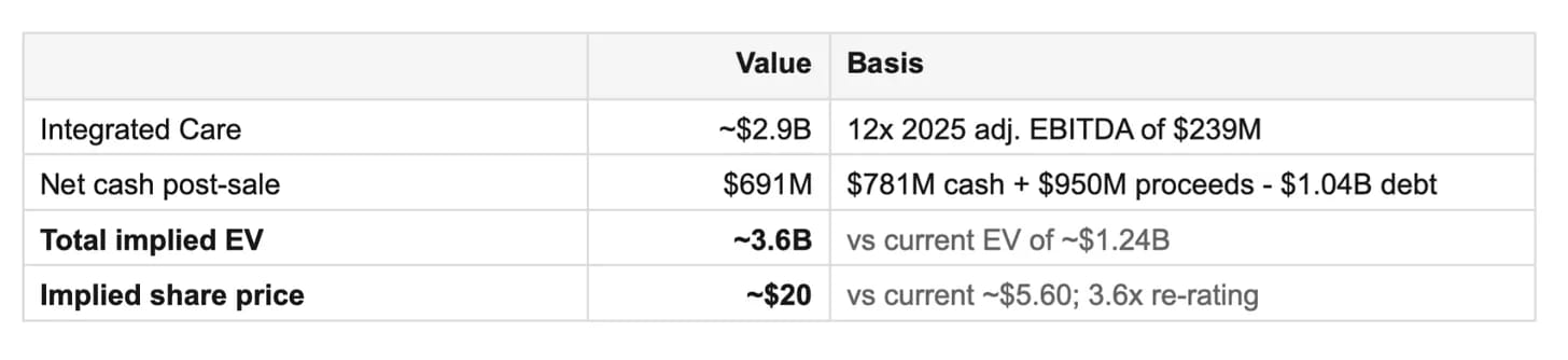 Then this week, Saki Georgiadis penned a great read on Substack, diving into the financial opportunity embedded within BetterHelp. It makes the case that BetterHelp is worth ~$1 billion today based on its insurance business, making a very similar point about Teladoc's valuation. He also suggests that if Teladoc sells BetterHelp for $1 billion, the remaining business should be worth ~$3.6 billion in total, versus the $1.24 billion the entire business is worth today: