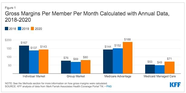 KFF released data on insurance margins and it looks like 2020 was a pretty good year across the board for insurers relative to 2019. Curious if this is a trend or a one time bump due to COVID. Link.