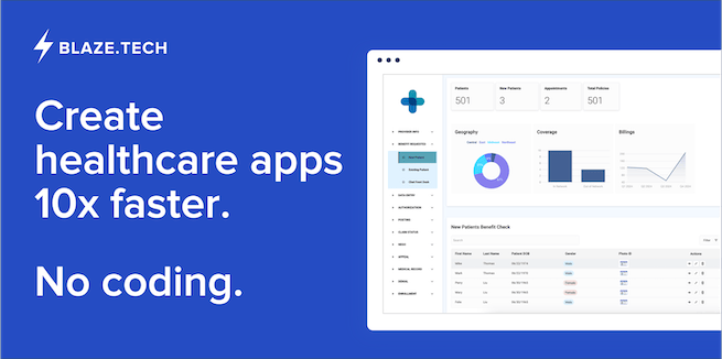 Blaze.tech is a no-code platform with in-house support and other valuable tools to help launch HIPAA-compliant apps 10x faster. Healthcare companies who use Blaze.tech have a 100% success rate in launching their apps.