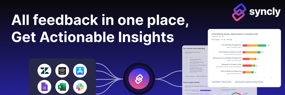 Syncly is a SOC 2 Type II compliant AI platform that continuously centralizes and transforms customer feedback into actionable insights. They help customer-facing teams understand, prioritize, and address pain points proactively. Orgs that partner with Syncly also notice improved collaboration between teams that risk becoming siloed as companies grow.